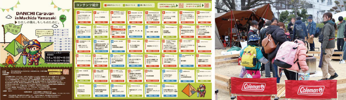 2025年3月8日(土)・9日(日)の2日間、町田山崎団地で「DANCHI Caravan in 町田山崎~つながる防災祭~」が開催されました。「わたしの備え、もしものために。」をテーマに、地域企業・団体と地域住民が参加し、防災に役立つ知識や心構えを、楽しみながら学べる機会となりました。