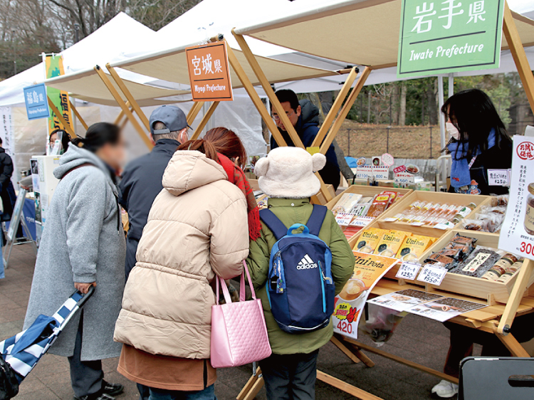 町田山崎団地の名店街エリアに「URふるさと応援プロジェクト」として出店した『UR東北復興マルシェ』。こちらには、岩手県・宮城県・福島県の特産品が集められ、魅力ある商品がずらりと並びました。