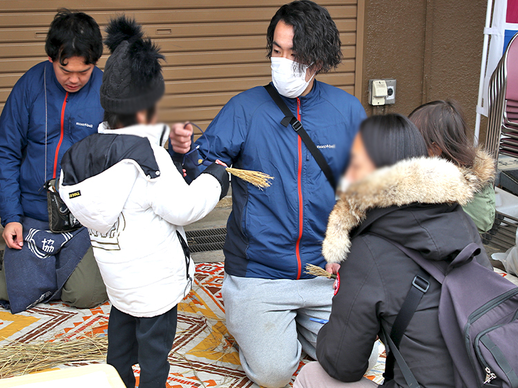 正和幼稚園は、収穫したわらでほうき作りの体験です。うまくできたかな?