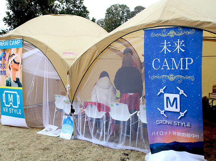未来CAMPでは、ドローンの操作体験やVRで防災体験を。貴重な体験です