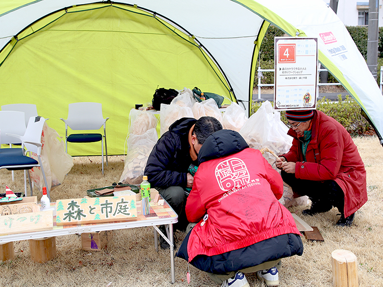 東京・森と市庭では、森のカケラで作る、なんと、小人と村作りワークショップです