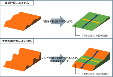 地形に一定以上の高低差がある場合には、造成計画と動線計画を組み合わせながら、人にやさしい空間づくりを進めています。
