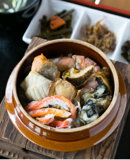 ランチどきにオススメは、こちらの「海鮮浜めし」(1,000円)。シャケやホタテなど具だくさんの味わい深い釜めしだ。釜代200円をプラスすれば持ち帰りもOK。