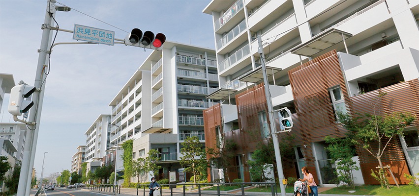建て替え前の浜見平団地を知るURの高橋 健は言う。「UR賃貸住宅棟の建て替えや公園整備が進んで明るく開放的になり、景色が一変したという印象です。現代のライフスタイルに合った新しい居住空間ができつつあると思っています」
