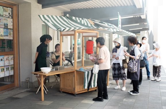 ラボの前のスペースを利用して開催される原市カフェ。