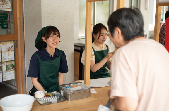 この日は上尾高校から3名の女子高生が原市カフェに参加。体験授業としてお手伝い。