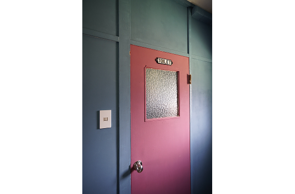 工具を自由に使える2階のDIYコーナー。 ペンキの色にこだわった、サテライトラボの2階の壁。