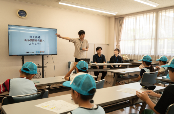 本日の体験に参加した小学生たちと記念撮影。後列右から、水槽の管理を担当する割石さん、URの太田優里、水野真希、吉村成翔、廣田将也、陸上養殖を担当する白井。7月22日、神戸市の新多聞団地集会所に、小学生と保護者たちが集まってきた。URが行う陸上養殖の体験プログラムに参加するメンバーだ。これは「こどもわーくin神戸2025」((一社)地域みらい創造センター主催、神戸市共催)の取り組みとして実施。「こどもわーくin神戸」は、日本財団「海と日本プロジェクト」の一環で、子どもたちが神戸の海に関わる仕事を体験するイベントだ。