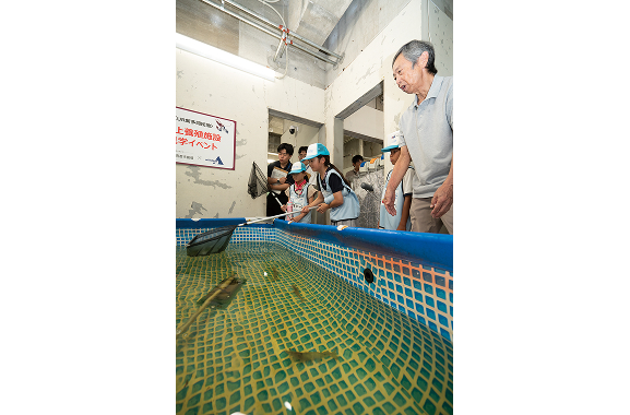 今年の夏休みには、小学生たちが養殖の仕事を体験しにやってきた。