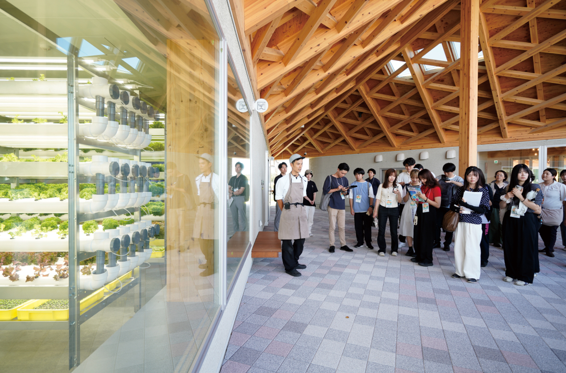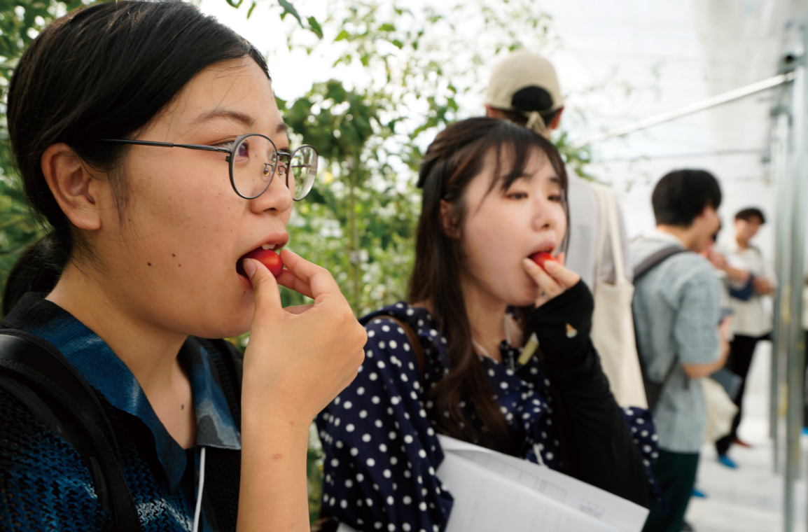次は大熊中央産業拠点に進出した「FUN EAT MAKERS in Okuma」へ。ここは東京に本社を置くIT系企業の農業部門で、レタス類を水耕栽培で、ミニトマトをサンゴ砂礫農法で栽培。弁当を作り1都3県の福祉施設に昼食を提供、大熊町でランチを営業する六次産業を行っている。施設長の菅原正平さんは、「大熊は今、世界で一番農業にとって厳しい土地。ここで成功すれば、世界のどこでも農業ができる」と語った。