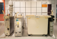 これはFF式給湯器とレンジフードが一体化したもので、60cmの幅があればガスコンロの真上に収まり、美観と安全性が大幅にアップ。シングルレバー水栓からお湯と水が出るようになるだけでなく、既設のプロペラ型換気扇の換気口に吸排気管などをすべて通すことができるので、工事も短時間ですむ。最新型ではスイッチの位置が改良され、誰でも使いやすい工夫がされている。