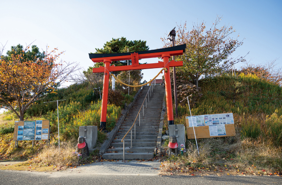 園内の日和山は、閖上地区を見渡せる高台で、津波で流された神社の分霊が祭られている。
