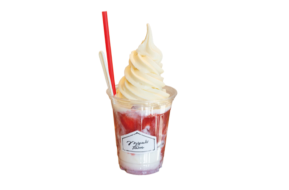 県内の山元町産の完熟にこだわった高級いちごのスイーツが楽しめる「MIGAKI FARM SHOP&CAFE」。フレッシュでぜいたくな味わいの「ミガキイチゴミルクフロート」(900円)。