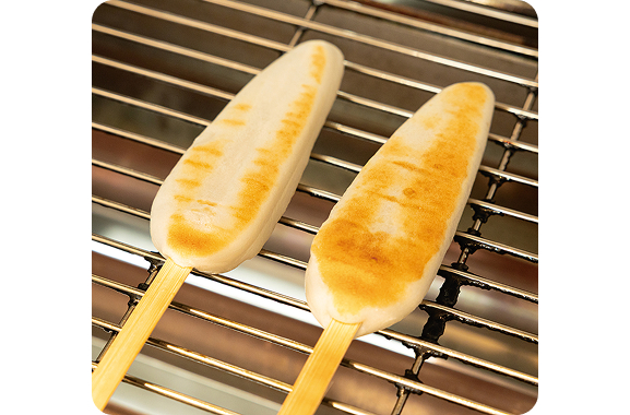 おみやげにぴったりな笹かまぼこ。「佐々直」、「ささ圭」では、自分であぶる手焼き笹かまぼこ体験ができる。アツアツでふわふわ!おススメ土産!