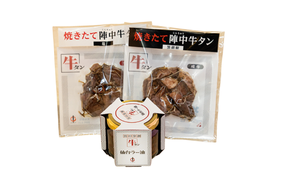 新製品の「焼きたて陣中牛タン」(650円)は、手軽に焼き立ての味が楽しめる。カットした牛タンを甘辛く煮込んだ「牛タン仙台ラー油」(950円)は、ご飯のお供に。閖上赤貝、北限のしらす、名取産の仙台せりなど、至福の味わいに出合う