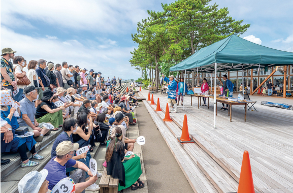 全長4kmのロードを潮風を浴びて爽快に疾走できる。「おもしろ自転車広場」、スケートボード、フットサル場などもあり、家族みんなで楽しめる。併設する天然温泉付き「輪りんの宿」で日帰り入浴もできる。