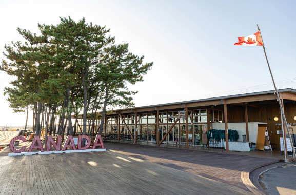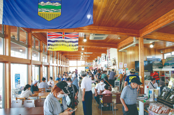 震災後、カナダなどの支援を受けて建設された施設「メイプル館」。フードコートやお土産販売、震災伝承コーナーがある。