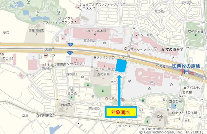 | 公募用途 | 印西牧の原西地区地区計画において規制されていない施設 (上記を原則としますが、別途、規制する用途もございます。) |