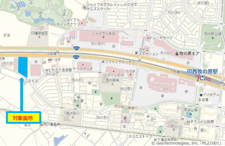 | 公募用途 | 印西牧の原西地区地区計画において規制されていない施設(上記を原則としますが、別途、規制する用途もございます。) |