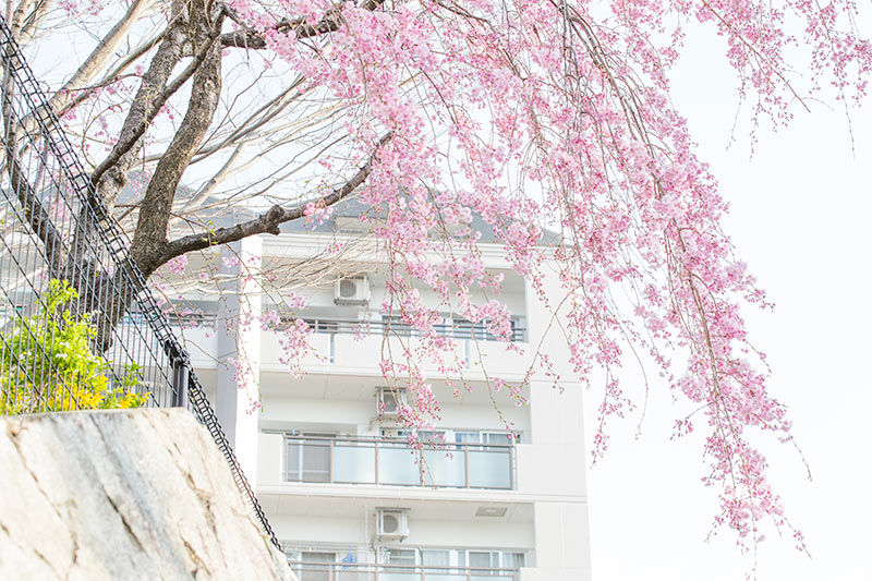 樹齢100年の山桜が団地を見守る、「アーバンラフレ虹ヶ丘西」の桜景色。