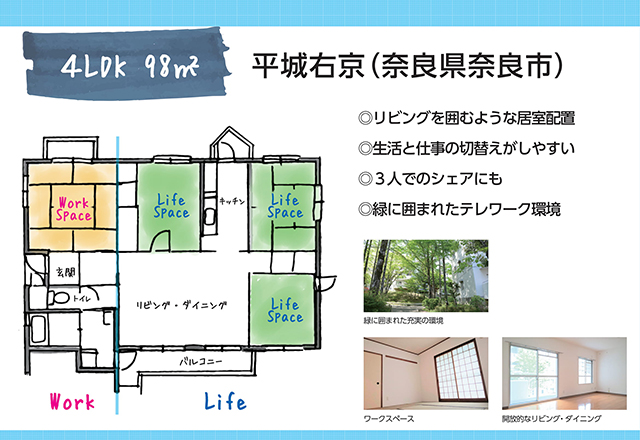 - ・生活エリアとは別に仕事部屋を持つことが大切。URには3LDKや4LDKなど間取りが充実しており、生活スタイルに合わせて部屋選びができる