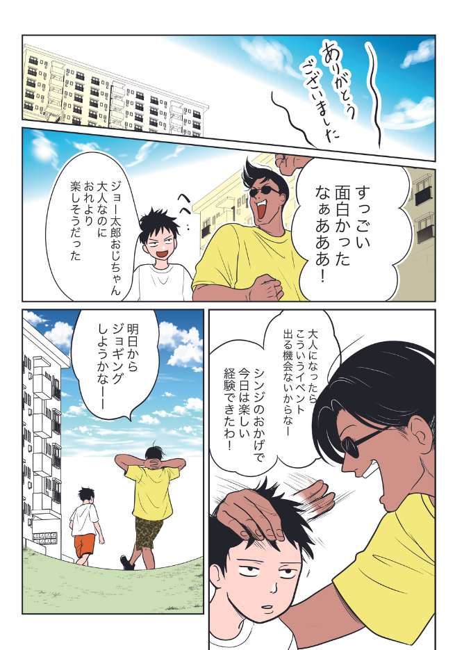 走るのが嫌いなおいっ子・シンジに自信をつけさせたいジョー太郎は、URの広場で行われるスタートダッシュ教室へ一緒に参加することに。少年のようにはしゃぐジョー太郎と、かけっこの楽しさを思い出せたシンジ。それぞれ充実した時間を過ごすことができました。UR賃貸住宅には、気軽に体を動かしたり、子どもと大人が一緒に楽しめたりするイベントを開催している団地があります。運動不足が気になる方、人との交流を求めている方は、UR賃貸住宅のHPをチェックしてみてください。