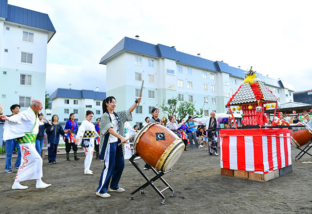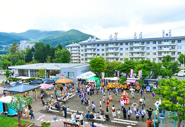 - ・あけぼの団地自治会、富山大学芸術文化学部 籔谷研究室、札幌市立大学 山田研究室、「さっぽろまなびまくり社」とURが一緒になり「みんなのあけぼのプロジェクト」を結成。その活動の一つとして、「みんなのあけぼの夏祭り」を開催