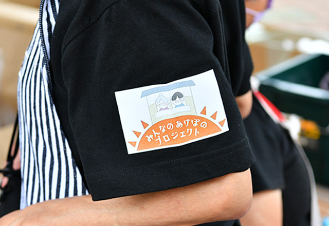 この日、自治会やボランティアのみなさんは袖に「みんなのあけぼのプロジェクト」の名前が入ったおそろいのTシャツを着て参加していました。