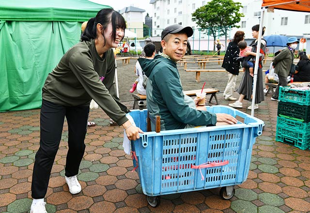 会場では、このほかにも富山大学芸術文化学部 籔谷研究室と札幌市立大学 山田研究室による「真駒内わくわくすごろく旅」と駄菓子屋の店員になりきれるお仕事体験ブースや参加者へのヒアリング、札幌市立大学による手作りお菓子&手編み雑貨の販売、キーホルダー作り体験など地域の大学生によるコンテンツや、八百屋「ふぁーむらんどShinwa」による野菜販売、有志によるプチ木工体験などさまざまなブースが設けられていました。