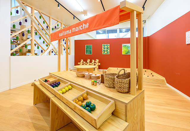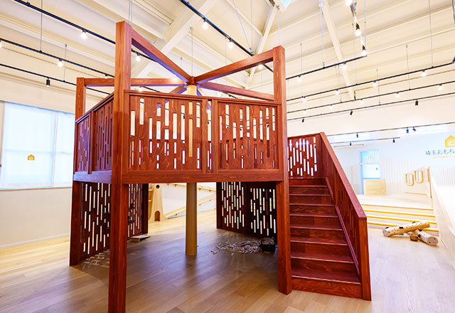 埼玉県産の木材をふんだんに使った館内には、国内外の木製玩具や、地域のおもちゃ作家による手作り作品など、趣向が凝らされた多彩なおもちゃが並びます。木のぬくもりに包まれた空間で、創造力や感性を育てるおもちゃで遊びながら、赤ちゃんからシニアまでが楽しく豊かな時間を過ごせます。