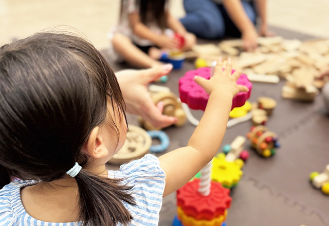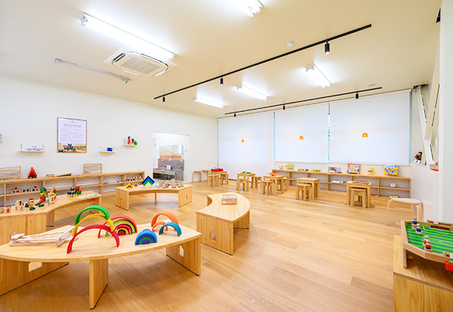 幼稚園の日々の遊びでは、各コーナーを順番に回りながら、さまざまなおもちゃに触れ合っています。同じ遊び場で園児の変化を見守ることで、成長や発達をより把握しやすくなりました。