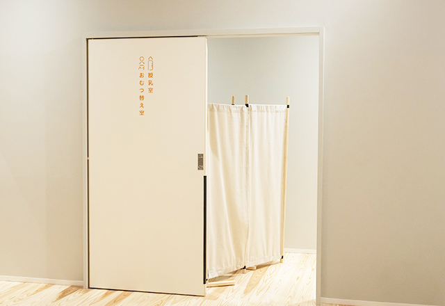 遊び場のすぐ横に「授乳室・おむつ替え室」も完備。「すぐに使えて助かる」と、利用者に好評です。