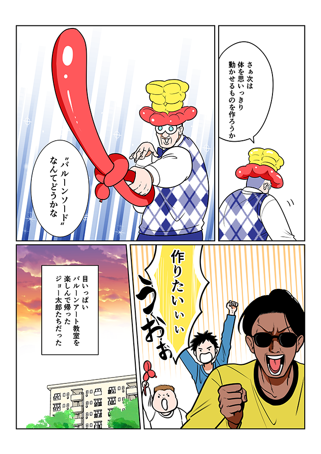 マンガ『ゆるやかに、くらしつながる話』第12話 ~ネズミが舞い上がる?ジョー太郎、バルーンアートにハマる編~