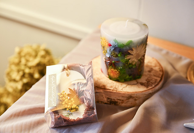 「日常に豊かな時をつくる、贈る、照らす。」をテーマに、キャンドル販売や、手作りキャンドル教室を開催。