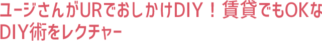 人気タレントのユージさんが、家の悩みを得意のDIYで解決! 賃貸住宅には原状回復義務がつきものですが、使用するアイテムやアイデア次第で賃貸住宅でもDIYができるんです。