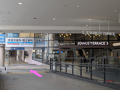 3.ジョイナステラス横の通路を真っすぐ進みます。 -