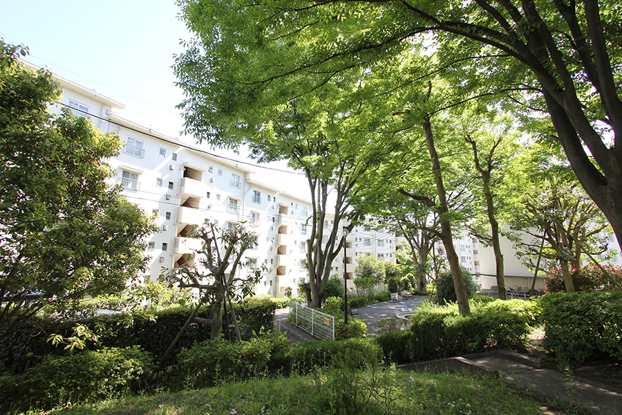 全棟5階建て、総戸数2200戸超、分譲部も含めると3400戸を超える、超ビッグタウン「藤の台」。イチョウ並木の道路を挟んだ二つの街区に広がる敷地の広さは、まさに“ニュータウン”の代名詞です。
