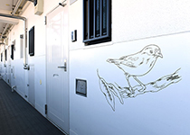 低層階にはきのこや木の実、中層階はつつじの花やチョウ、高層階には飛び立つ鳥たちと、生息エリアをイメージして配置しているので、イラストを見れば、何階あたりにいるのかも自然と分かるのだそうです。