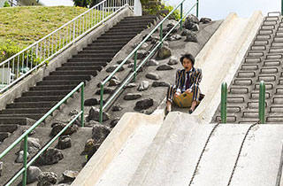 こんなすべり台が団地内に!?団地の高低差を利用した遊具