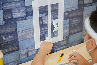次は背景づくりです! 貼ってはがせる壁紙を使うんだけど、一面に貼るんじゃなくて、何かの形にするのはどう?
