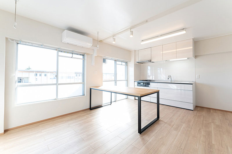 きれいなキッチンで料理を作って二人で食べるなど、のんびりと日々を送れます。洋室二つを居室として使うことで適度な距離感を保つことができます。