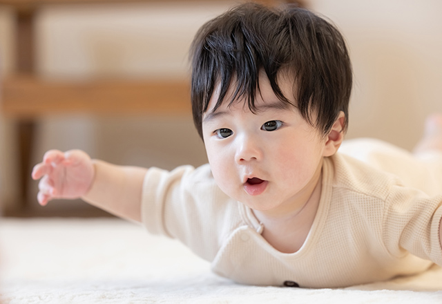 - ・寝返りができるようになると行動範囲が広がるため誤飲やけがにつながらないように注意が必要。赤ちゃんがのびのび動ける環境を整えることが大切