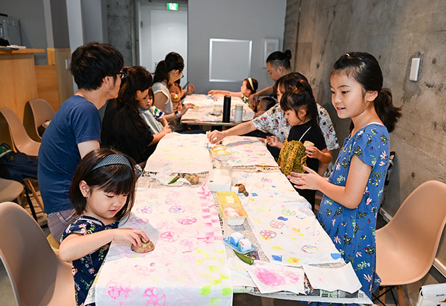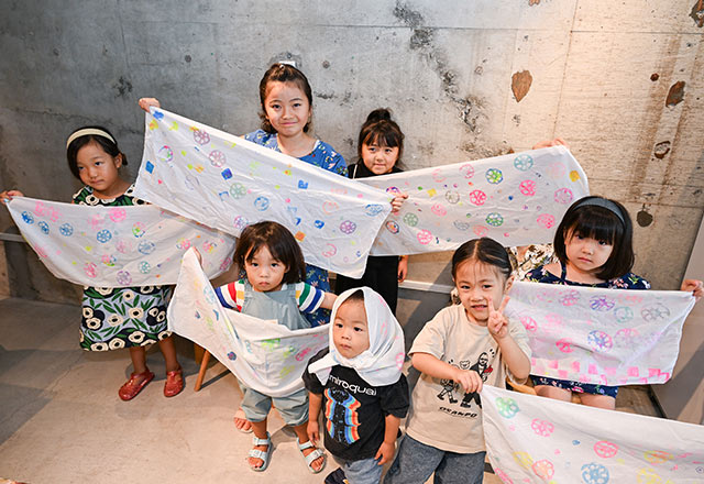 - ・子どもと保護者向けのワークショップ「手ぬぐいに野菜でスタンプしよう」では、手ぬぐいに野菜スタンプを押した、オリジナル手ぬぐいを制作