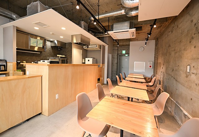 1階は、出店者と地域の方の会話やつながりが生まれるチャレンジキッチン、2階はイベントやワークショップもできるコミュニティスペース。- 【営業時間】1階 7:00~22:00(営業可能時間は21:00まで)、2階 9:00~20:00 ※応相談