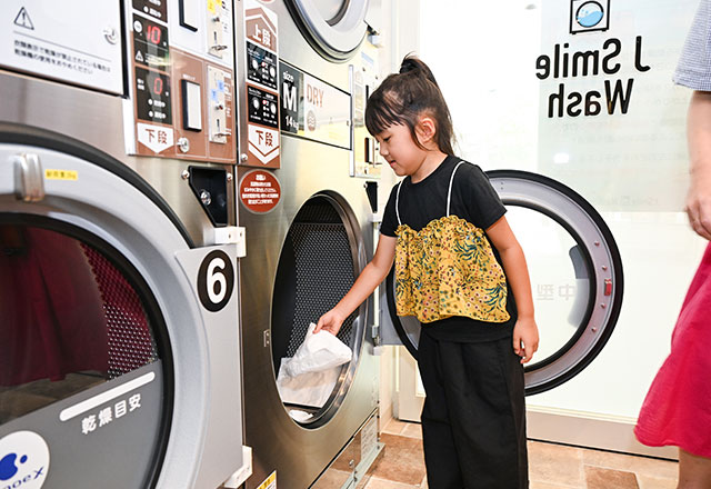 当日は、参加者はまず「シェアベース洋光台」に集合。続いて、団地内にあるJSが運営するコインランドリー「J Smile Wash 洋光台店」に移動し、水通しした手ぬぐいを洗濯乾燥機にかけました。