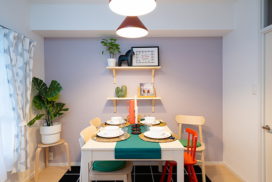 赤や黄色といったプライマリーカラーをアクセントに木目や白の色調をメインにした『居心地よく機能的な巣(ネスト)』。個々でも、家族一緒にでも、ここで過ごす時間を楽しみ、くつろげることを目指しました。