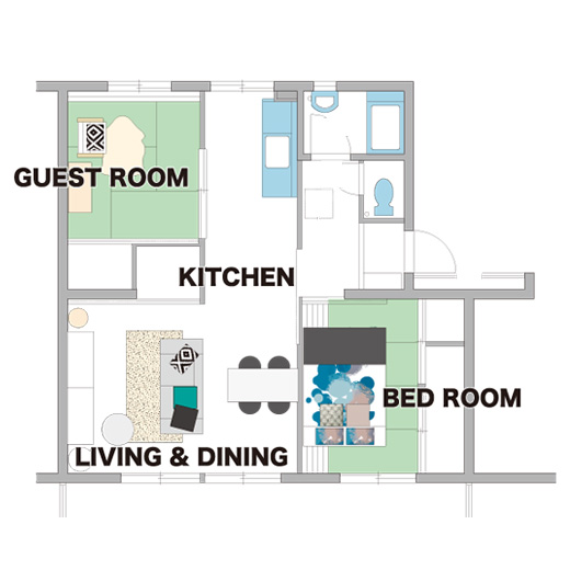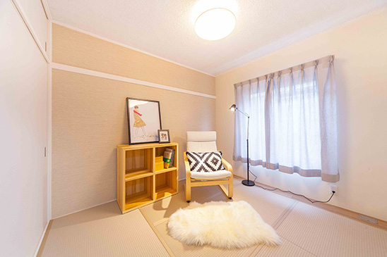 お客様にお使いいただくお部屋として、普段は読書などを楽しむスペースとして利用できます。押入れに普段使用しないものや布団を収納することで、すっきりとした印象のお部屋を演出することができます。
