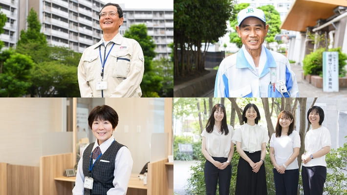 団地の敷地や建物内の清掃を担当する「クリーンメイト」は、ごみ集積所や集会所の清掃、落ち葉の収集などに取り組んでいます。日々のあいさつや住民との交流も大切にしながら、清潔で心地よい住まいづくりに努め、安心できるくらしを支えています。