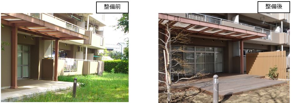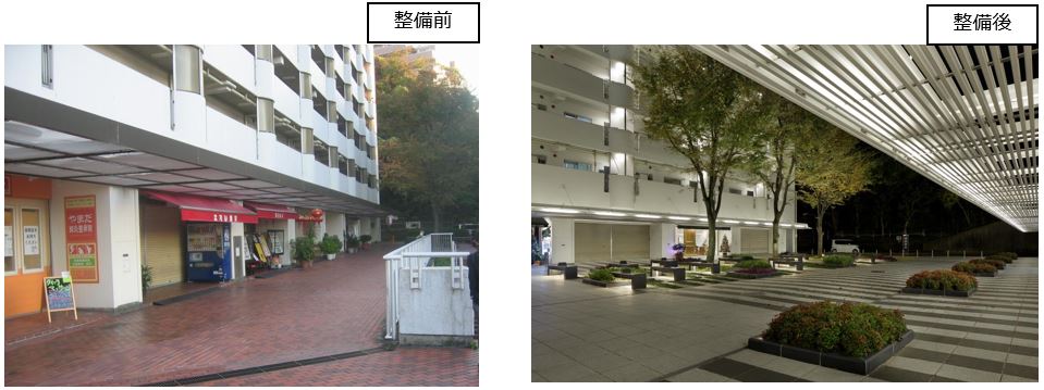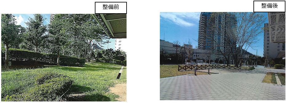 例6 鬱蒼としていた植栽を整理し、開放感のある通路整備で、コミュニティー形成に寄与する空間を整備