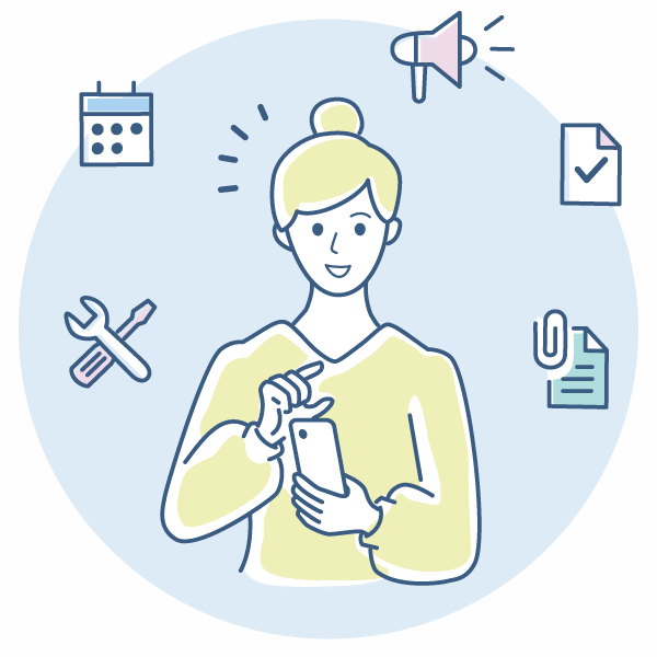 設備点検やイベント情報はもちろん、重要なお知らせも手元ですぐに確認できます。